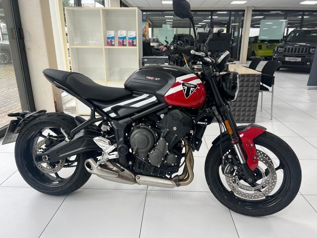 Herzlich Willkommen bei Triumph Karlsruhe by Autohaus Neureither – Ihrem autorisierten Triumph Vertragspartner in der Region Karlsruhe. Die Triumph Trident 660 ist eines der beliebtesten Naked Bikes am Markt: leicht, agil, modern ausgestattet und mit dem typischen Triumph-Dreizylinder, der eine perfekte Mischung aus Drehmoment, Laufruhe und Sportlichkeit bietet. Die Trident ist in Top und mit bereits erledigter Erstinspektion sofort verfügbar. Fahrzeugdaten Modell: Triumph Trident 660 Kilometerstand: 847 km Erstzulassung: 02/2025 Farbe: Diablo Red MwSt.: ausweisbar